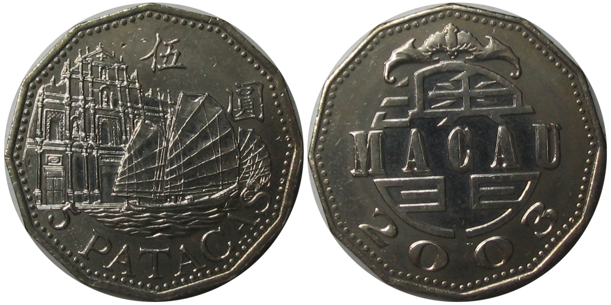 Cu/Ni | 28 мм | 2 мм | | Гладкий, 12 граней | 2003 | 5 Патака | 2003 | - | |