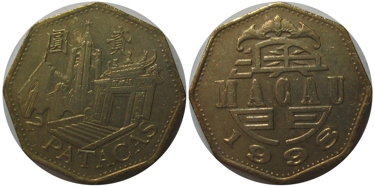 Cu/Ni | 28 мм | 2 мм | | Гладкий, 8 граней | 1998 | 2 Патака | 1998 | - | |