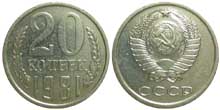 | | 1981 | 20 Копеек | 1961, 1962, 1978, 1980, 1981, 1991л | 1x1962 | |