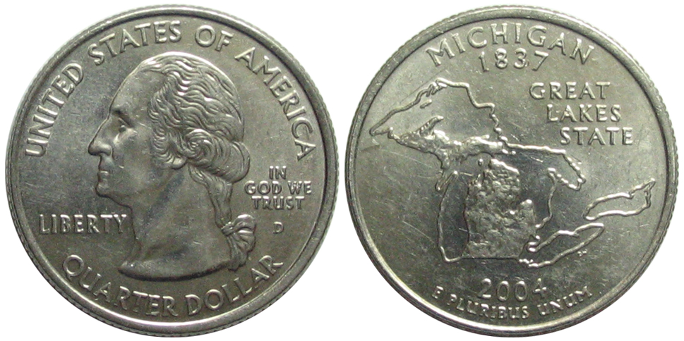 | 682 | ![]() | США | 2004 | 25 Центов | 2004 | Michigan 1837 Great Lakes State Великие озера | |