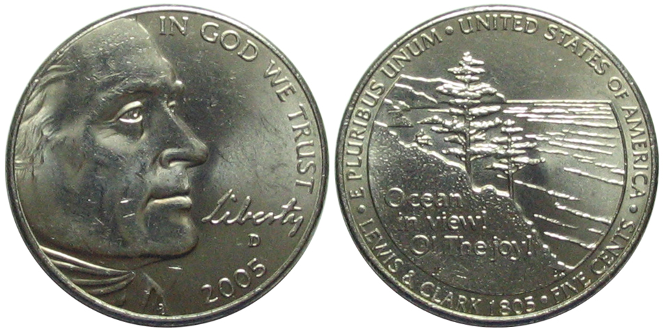 | 683 | ![]() | США | 2005 | 5 Центов | 2005 | LEWIS&CLARK Ocean in view! O| The joy! Сосны на склоне | |