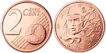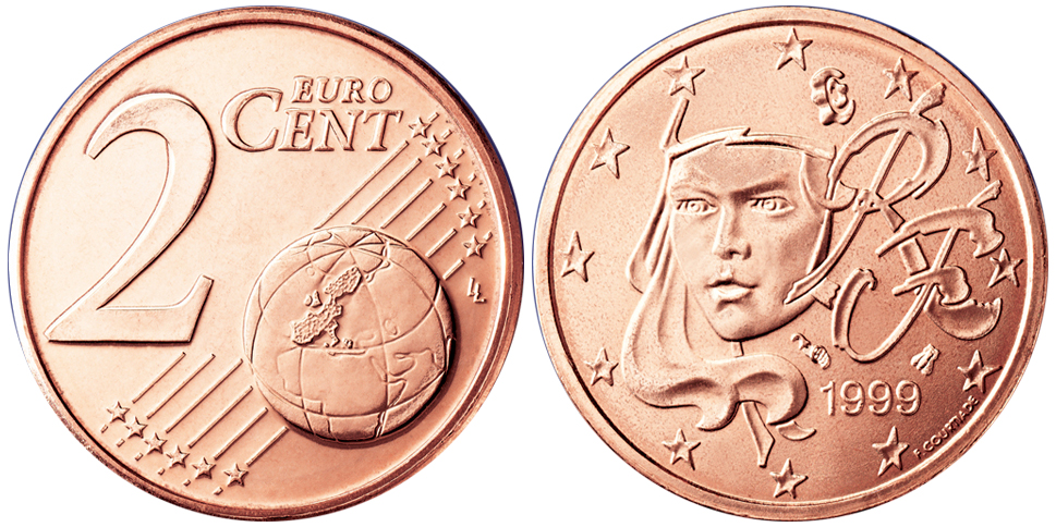 | 732 | ![]() | Евро | 1999 | 0 | 2 Цента | 1999, 2000, 2005, 2006, 2007, 2008, 2009 | Франция |