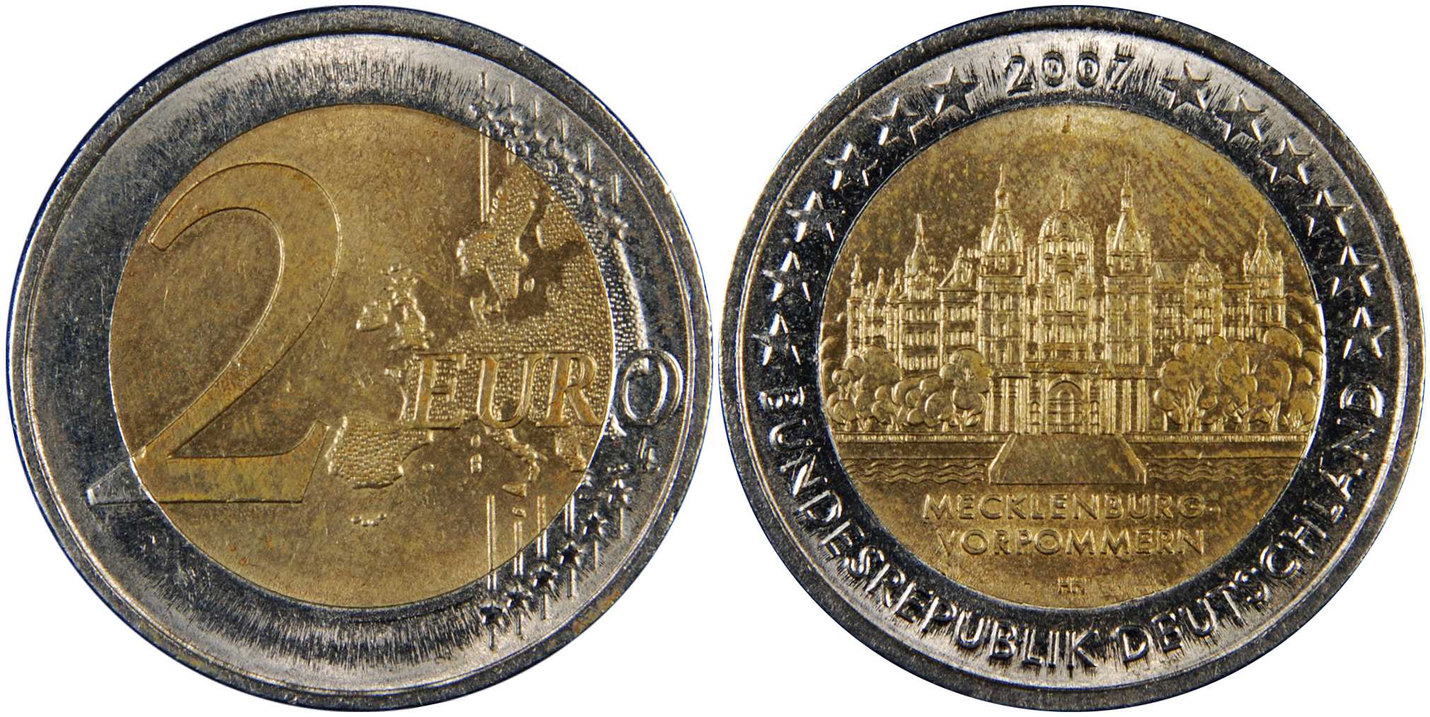 | 744 | ![]() | Евро | 2007 | 0 | 2 Евро | 2007 | Германия, MECKLENBURG VORPROMMERN BUNDESREPUBLIC DEUTSCHLAND |