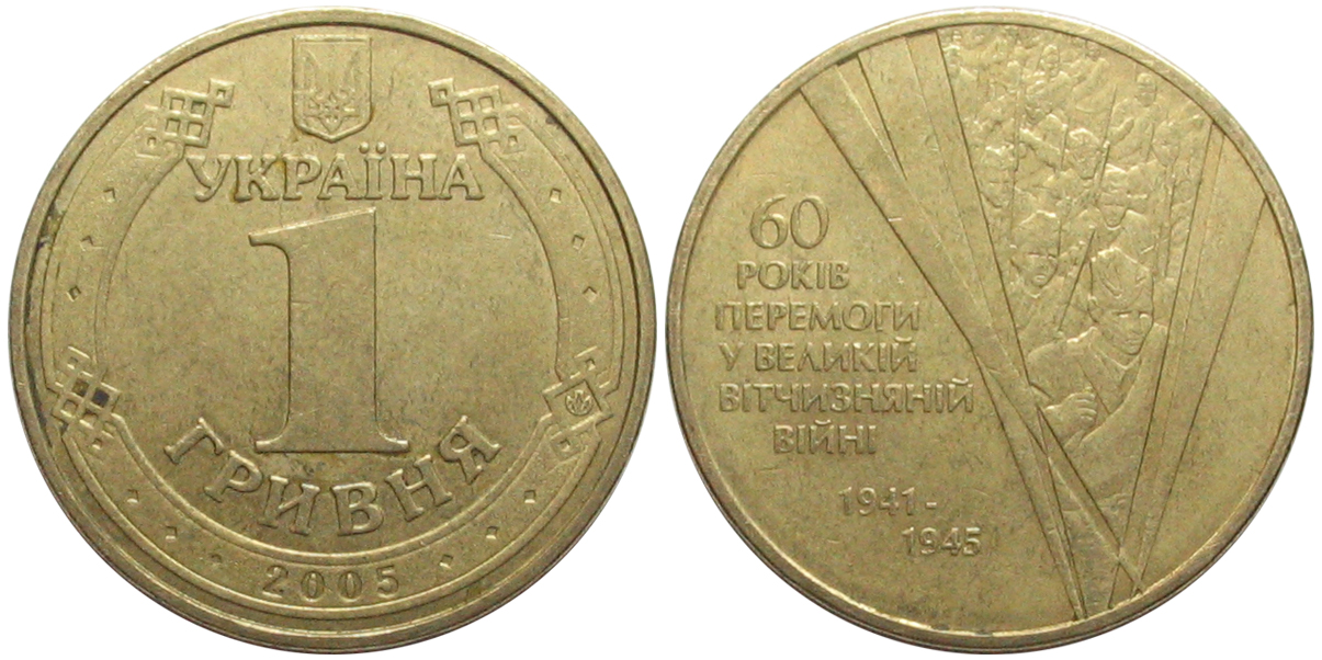 | 686 | ![]() | 2005 | 1 Гривна | 2005 | 60 Рокiв Перемоги у Великiй Вiтчизнянiй Вiйнi 1941-1945 |